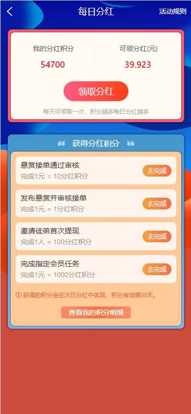更令人兴奋的是,通过参与特定活动任务,用户还可以享受到分红权益,其分红额度与平台总收益挂钩,人人可参与,这不仅仅是平台回馈用户的的一种方式,更是平台展望未来,创造一个独一无二的超长期稳定的悬赏平台。